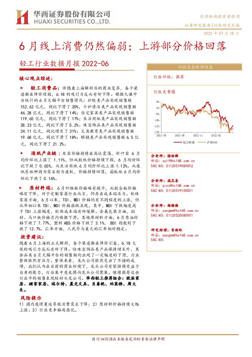 华西证券:轻工行业数据月报:6月线上消费仍然偏弱;上游部分价格回落.pdf
