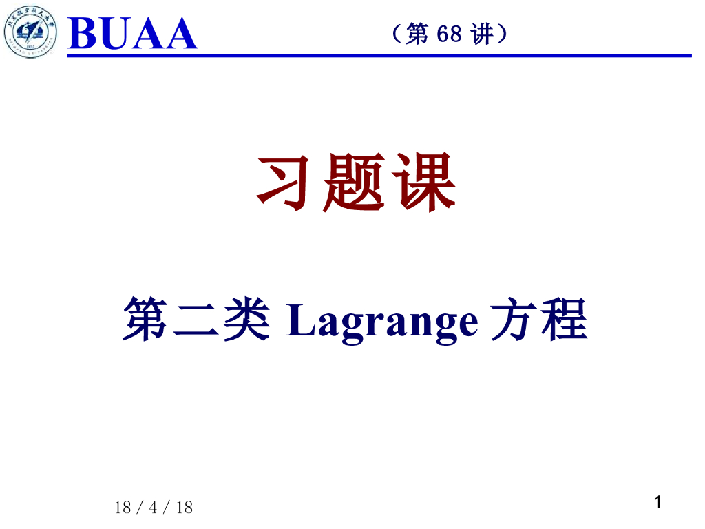 《理论力学》课件-习题课(拉氏方程).pdf