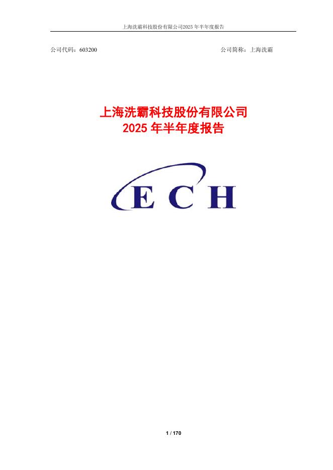 603200-上海洗霸:上海洗霸科技股份有限公司2025年半年度报告.pdf