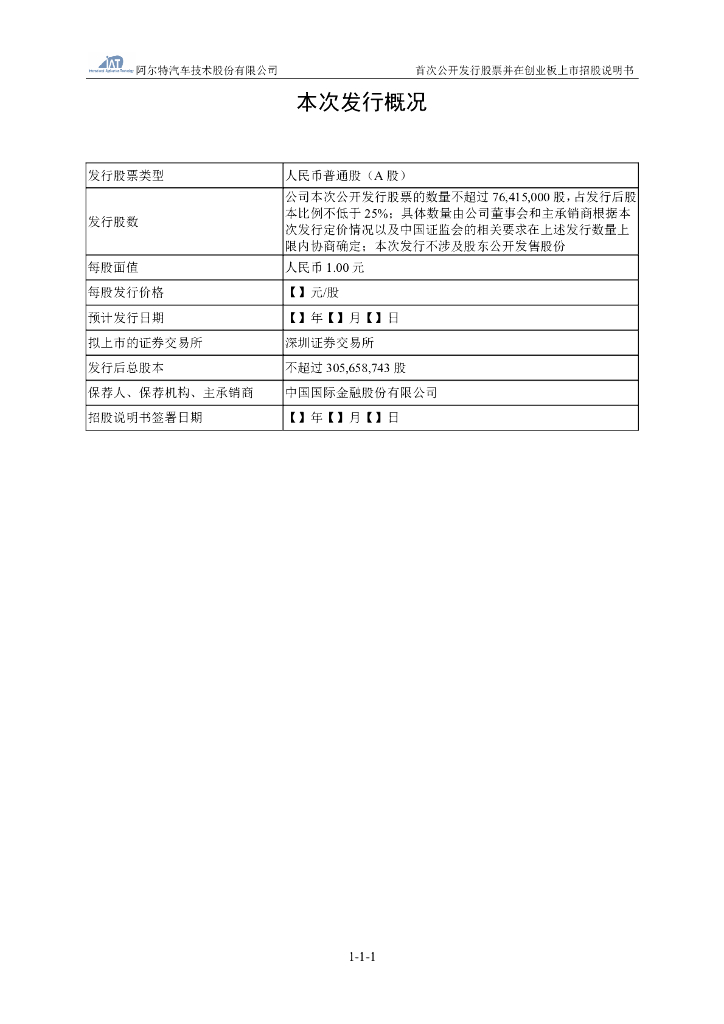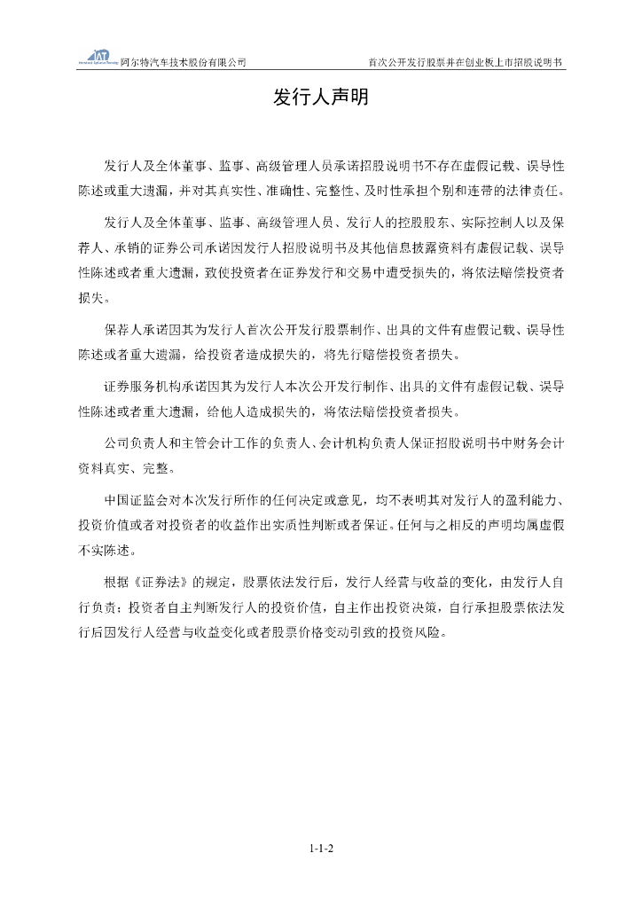 阿尔特汽车技术股份有限公司深交所创业板IPO上市招股说明书.pdf