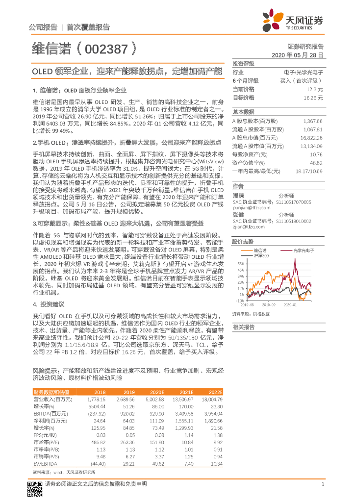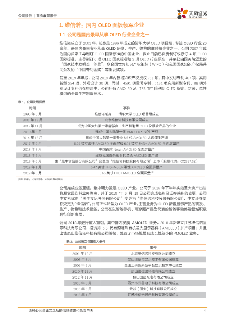 天风证券:维信诺(002387)-OLED领军企业,迎来产能释放拐点,定增加码产能.pdf