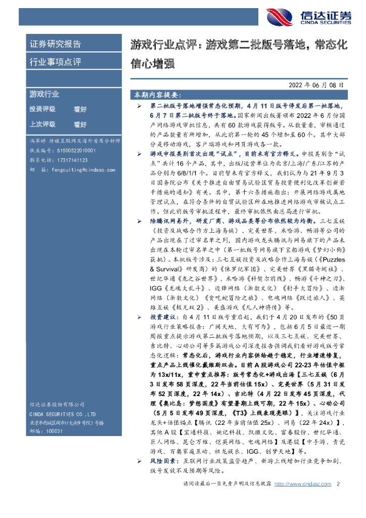 信达证券:游戏行业点评:游戏第二批版号落地,常态化信心增强.pdf