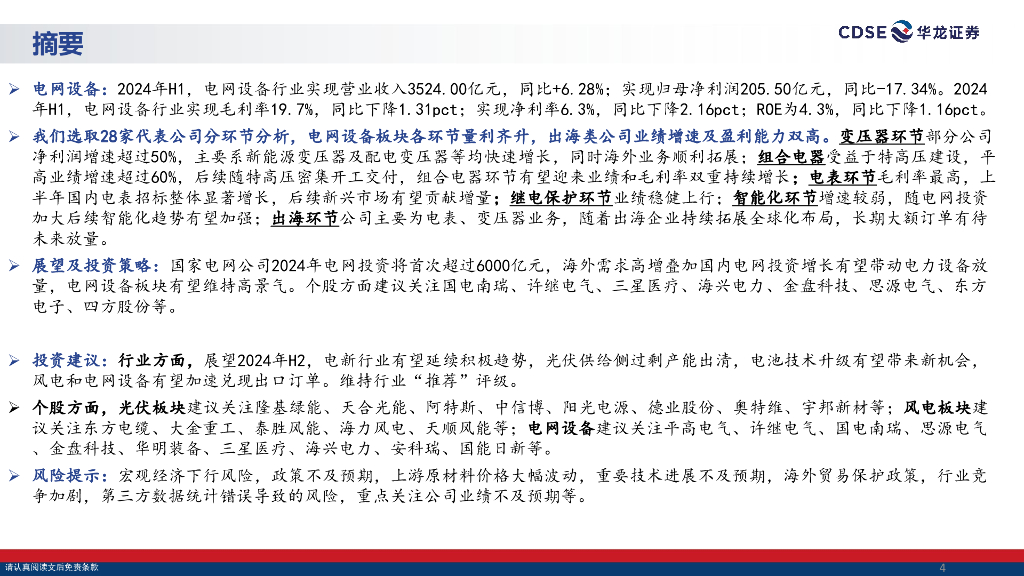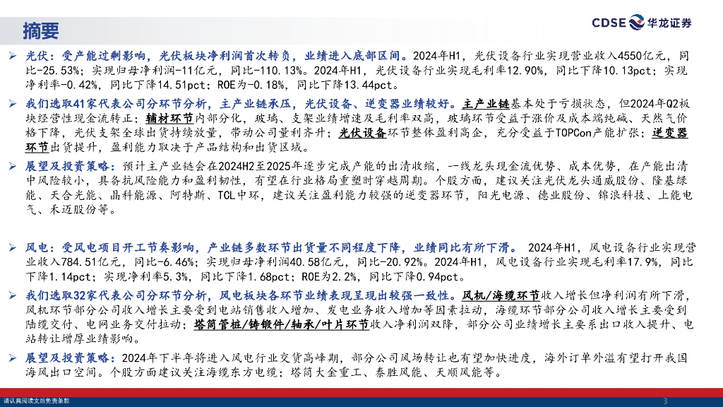 华龙证券:电力设备行业2024年半年报业绩综述:风光底部明朗,电网景气上行.pdf