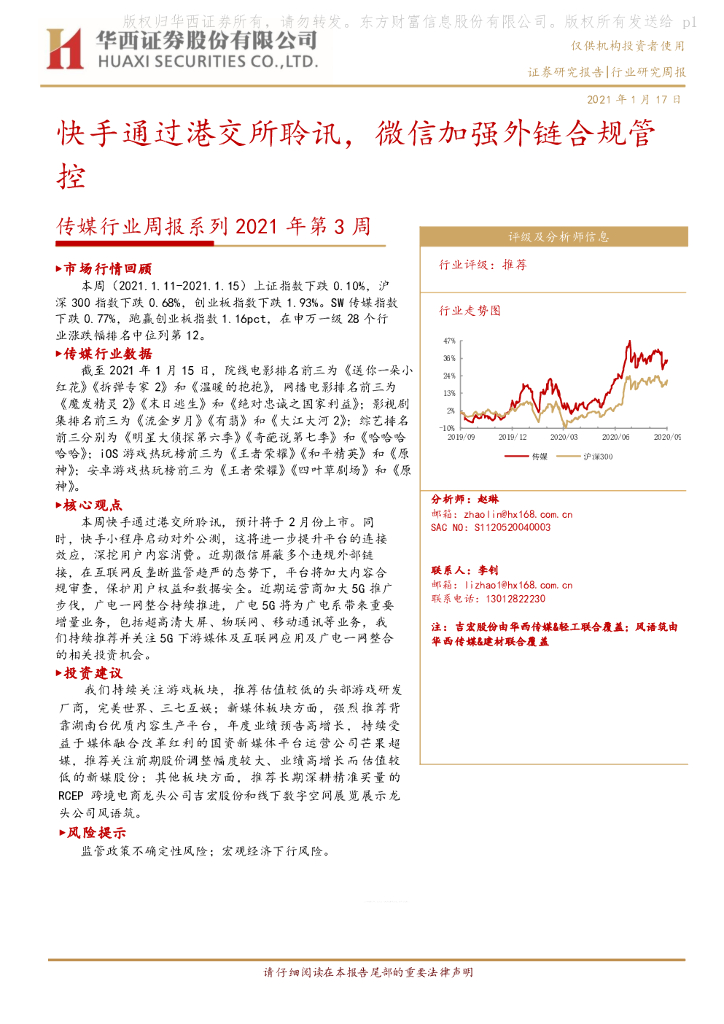 华西证券:传媒行业周报系列2021年第3周:快手通过港交所聆讯,微信加强外链合规管控.pdf