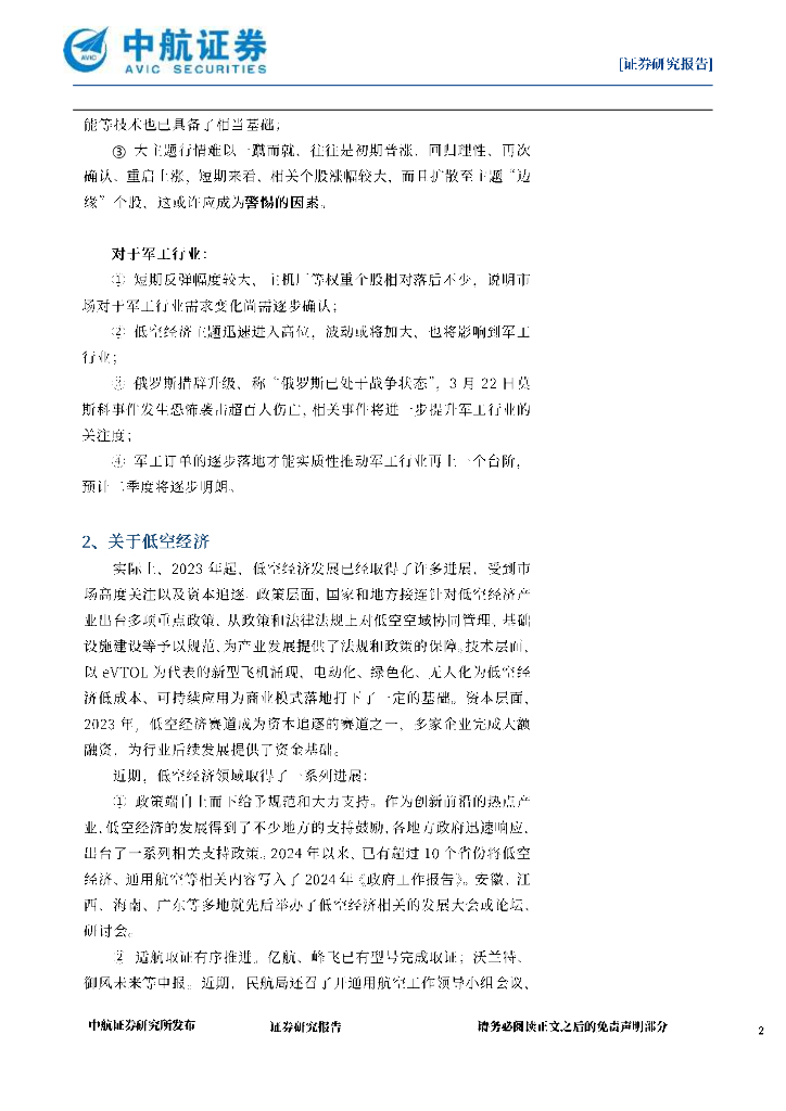 中航证券:军工行业周报:谈谈低空经济和近期行情.pdf