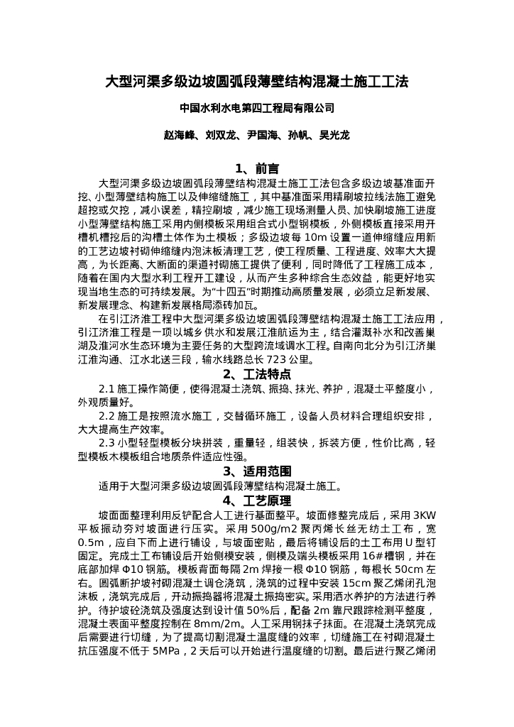 QHGF-2022155 大型河渠多级边坡圆弧段薄壁结构混凝土施工工法.doc