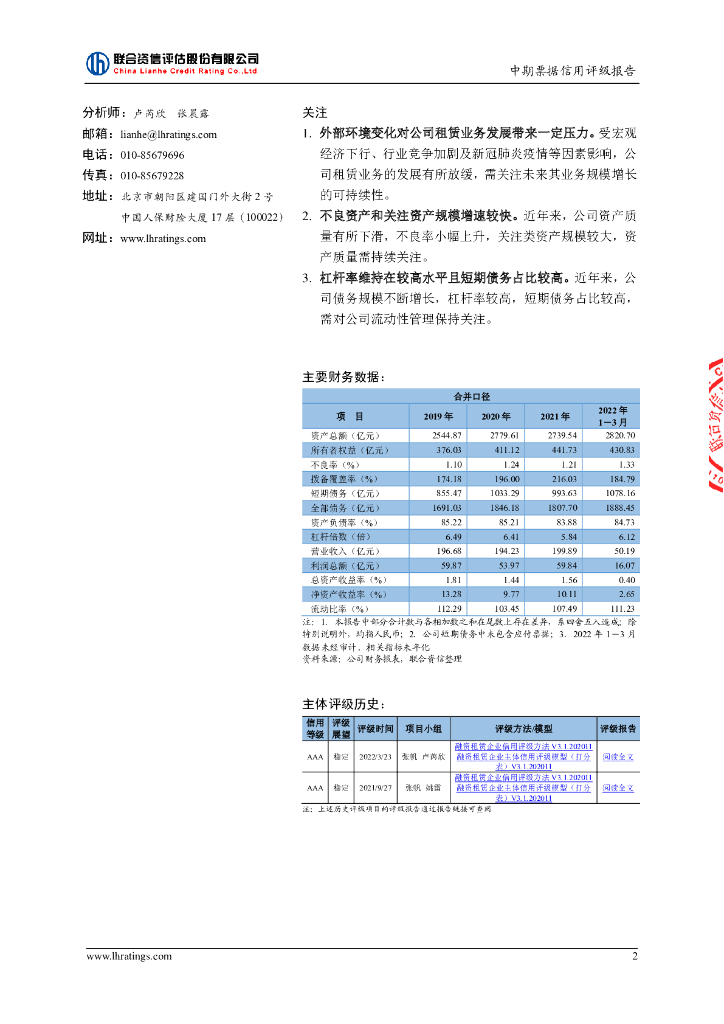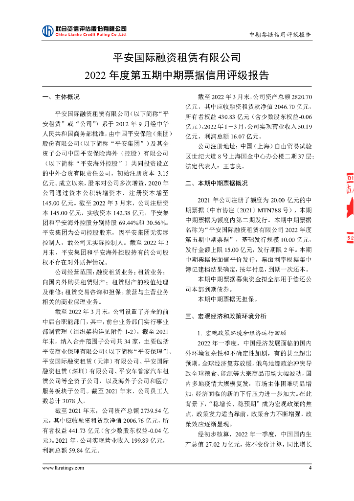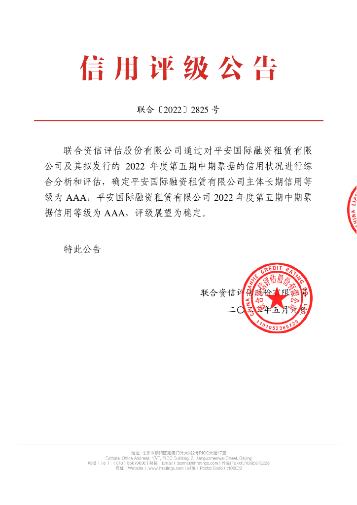 联合资信:平安国际融资租赁有限公司2022年度第五期中期票据信用评级报告及跟踪评级安排.pdf