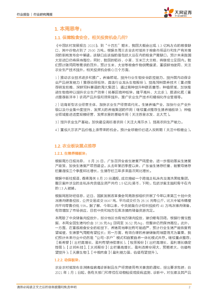 天风证券:农林牧渔2020年第35周周报:本周继续重点推荐粮食安全产业链投资机会.pdf