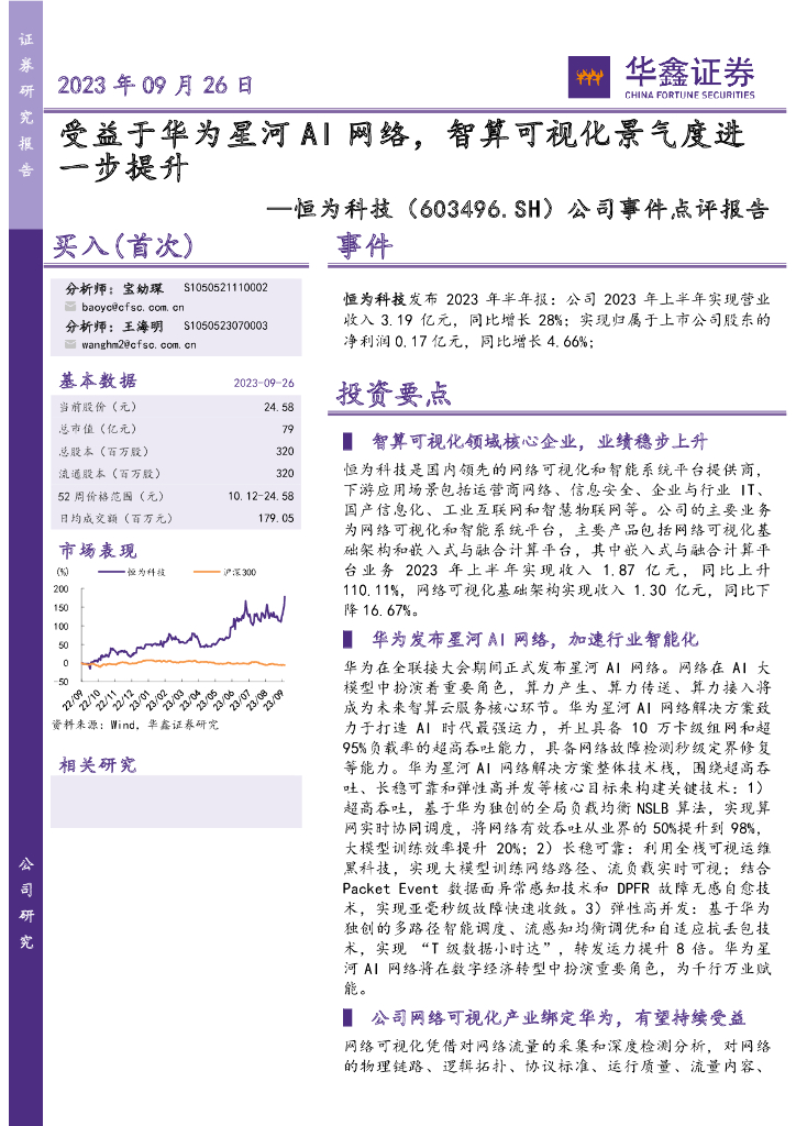 华鑫证券:恒为科技(603496)-公司事件点评报告:受益于华为星河AI网络,智算可视化景气度进一步提升.pdf