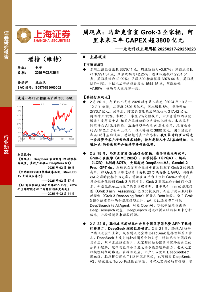 上海证券:电子行业先进科技主题周报-周观点:马斯克官宣Grok-3全家桶,阿里未来三年CAPEX超3800亿元.pdf