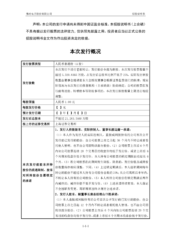 伟时电子股份有限公司上交所主板IPO上市招股说明书.pdf