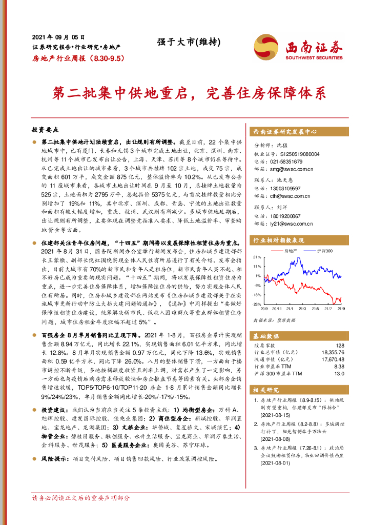 西南证券:房地产行业周报:第二批集中供地重启,完善住房保障体系.pdf