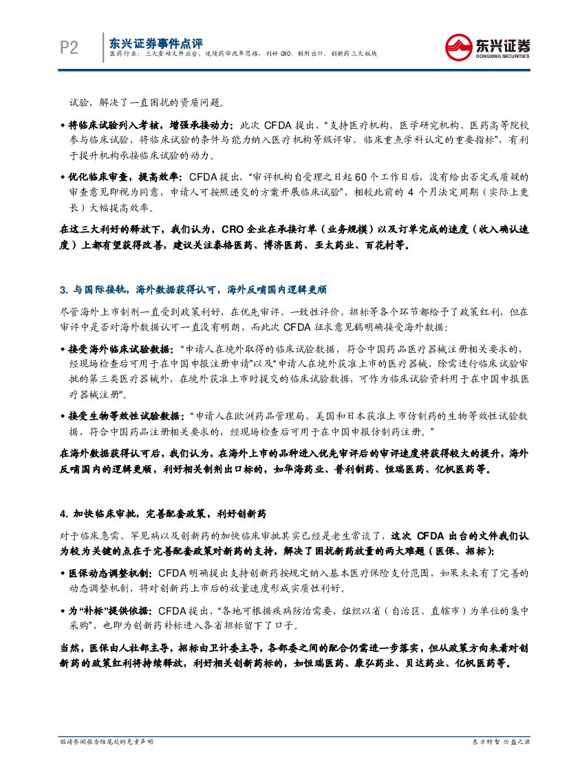 东兴证券:医药行业事件点评:三大重磅文件出台,延续药审改革思路,利好CRO、制剂出口、创新药三大板块.pdf