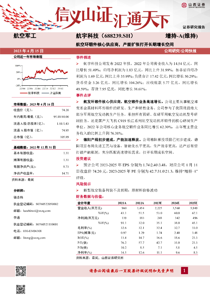 山西证券:航宇科技(688239)-航空环锻件核心供应商,产能扩张打开长期增长空间.pdf
