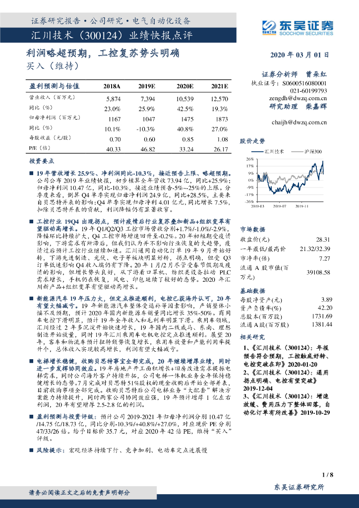 东吴证券:汇川技术(300124)-业绩快报点评:利润略超预期,工控复苏势头明确.pdf