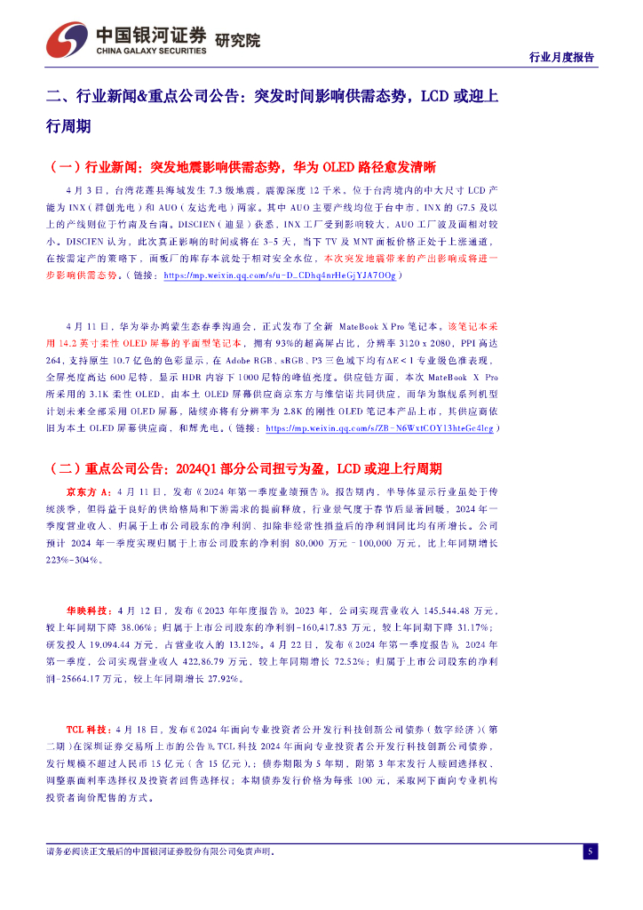 中国银河:光学光电子行业月度报告:面板价格维持分化趋势,LCD或将迎来新一轮上行周期.pdf