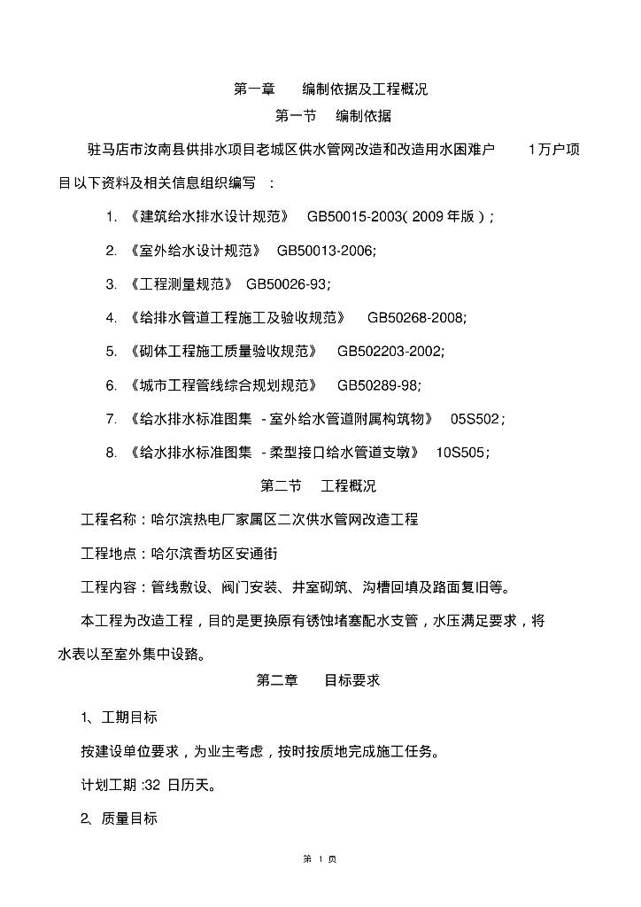 哈尔滨热电厂家属区供水管网改造工程施工组织设计87页.pdf