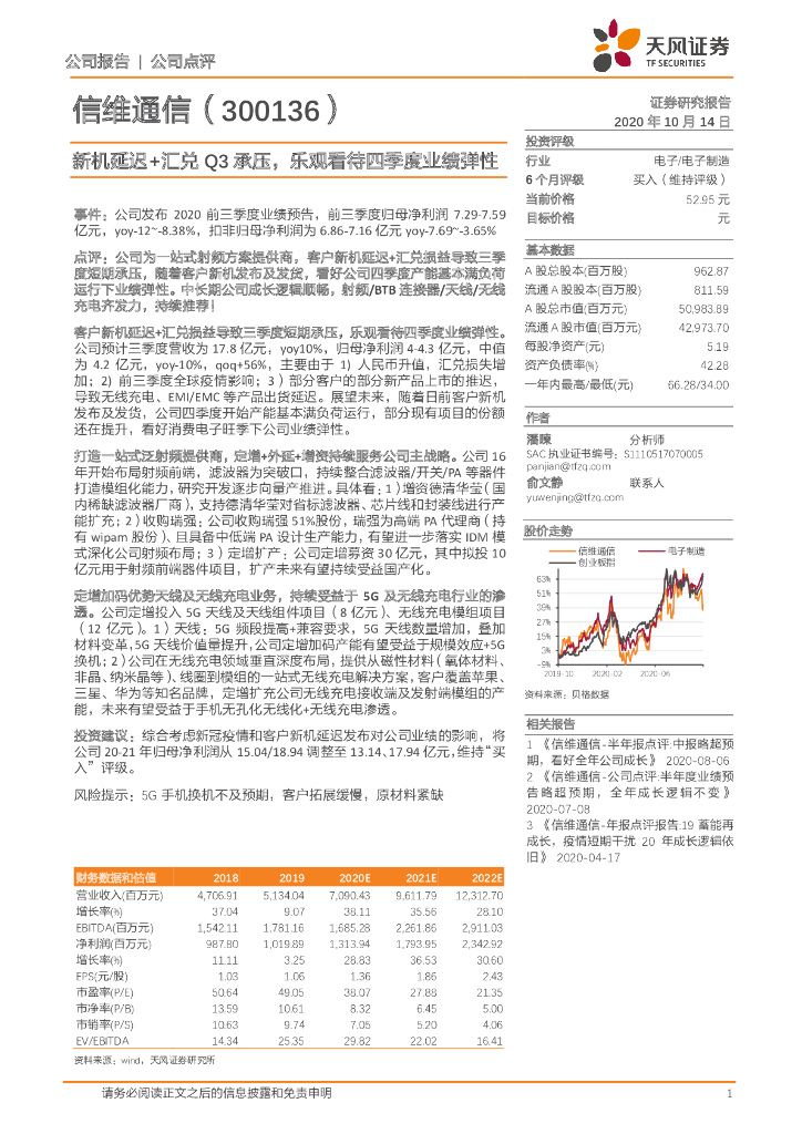 天风证券:信维通信(300136)-新机延迟+汇兑Q3承压,乐观看待四季度业绩弹性.pdf