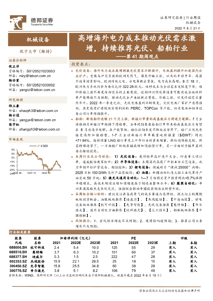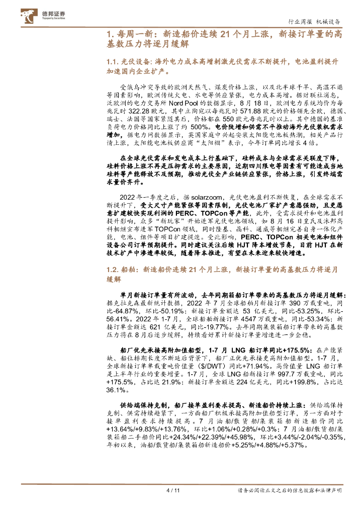 德邦证券:机械设备第41期周观点:高增海外电力成本推动光伏需求激增,持续推荐光伏、船舶行业.pdf