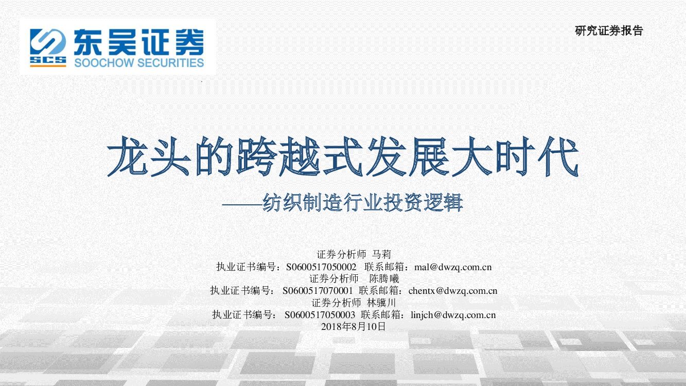 东吴证券:纺织制造行业投资逻辑:龙头的跨越式发展大时代.pdf