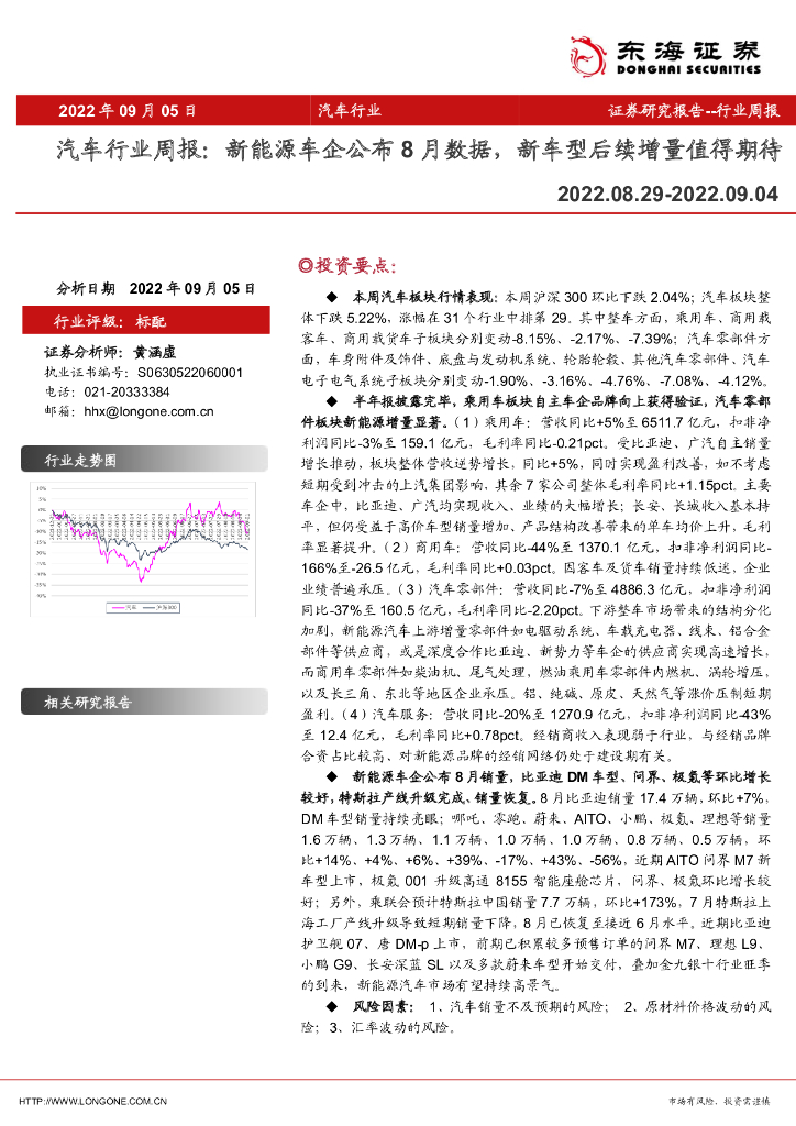 东海证券:汽车行业周报:新能源车企公布8月数据,新车型后续增量值得期待.pdf