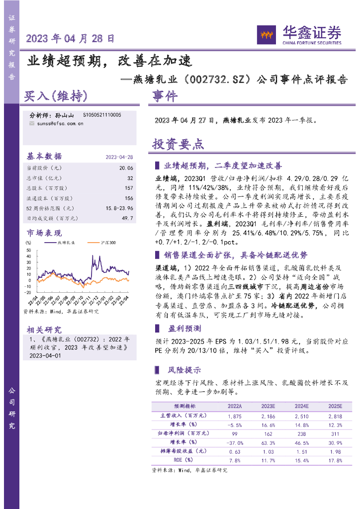 华鑫证券:燕塘乳业(002732)-公司事件点评报告:业绩超预期,改善在加速.pdf