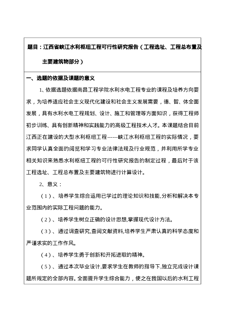 水利工程专业毕业设计开题报告.doc