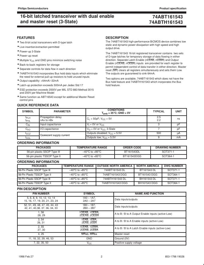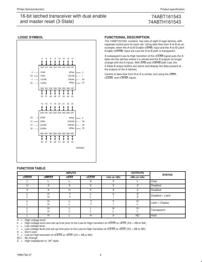飞利浦 74ABT161543, 74ABTH161543 数据手册.pdf