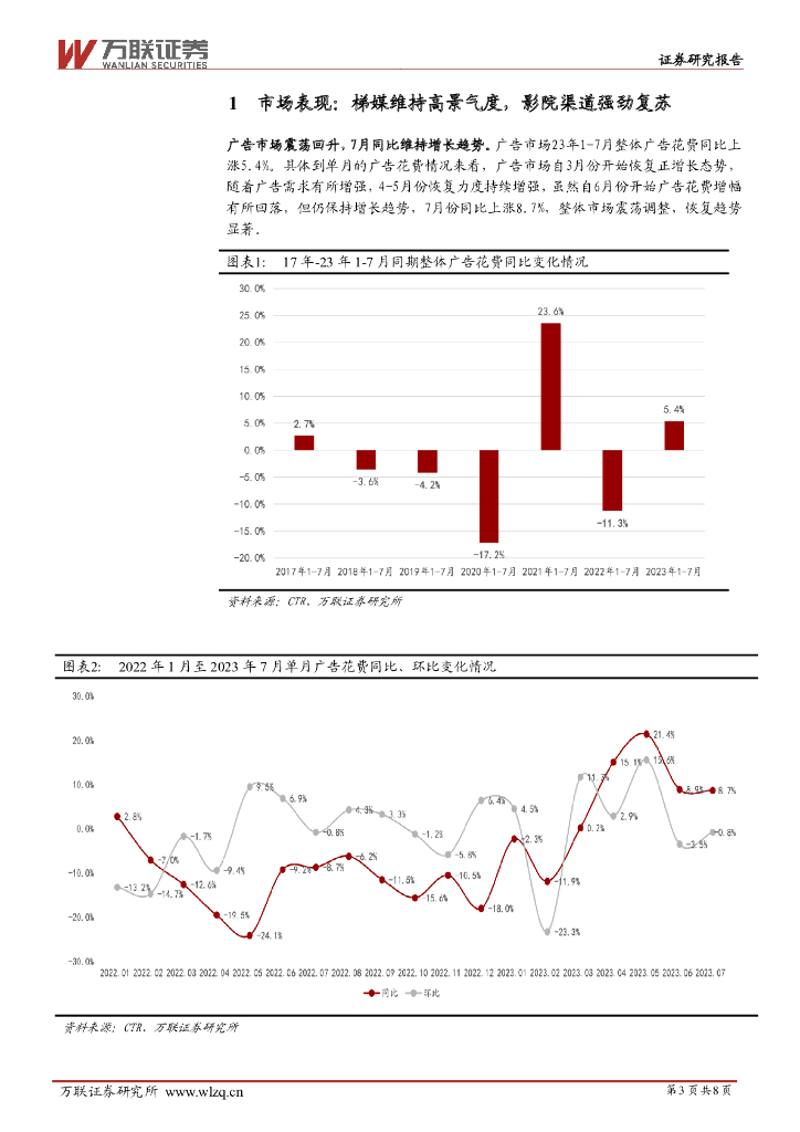 万联证券:传媒行业跟踪报告:广告市场震荡回升,影院视频渠道强劲复苏.pdf