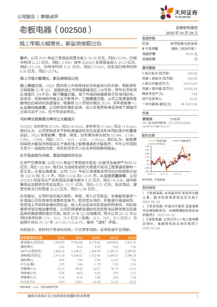 天风证券:老板电器(002508)-线上市场大幅增长,新品类表现出色.pdf