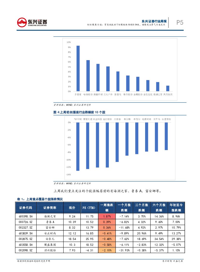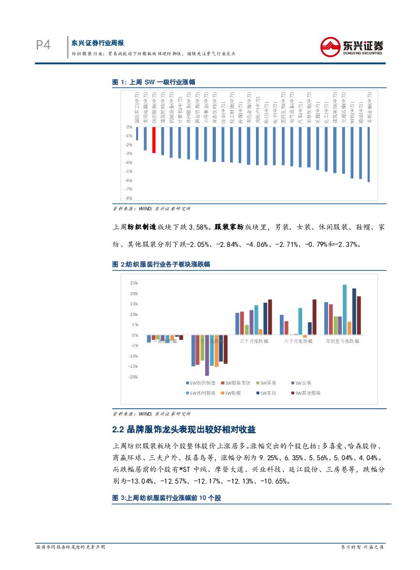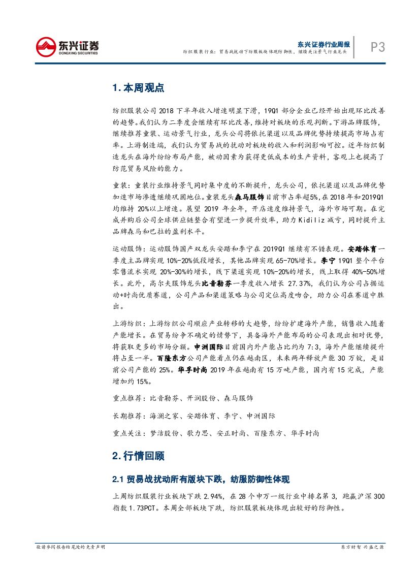 东兴证券:纺织服装行业周报:贸易战扰动下纺服板块体现防御性,继续关注景气行业龙头.pdf
