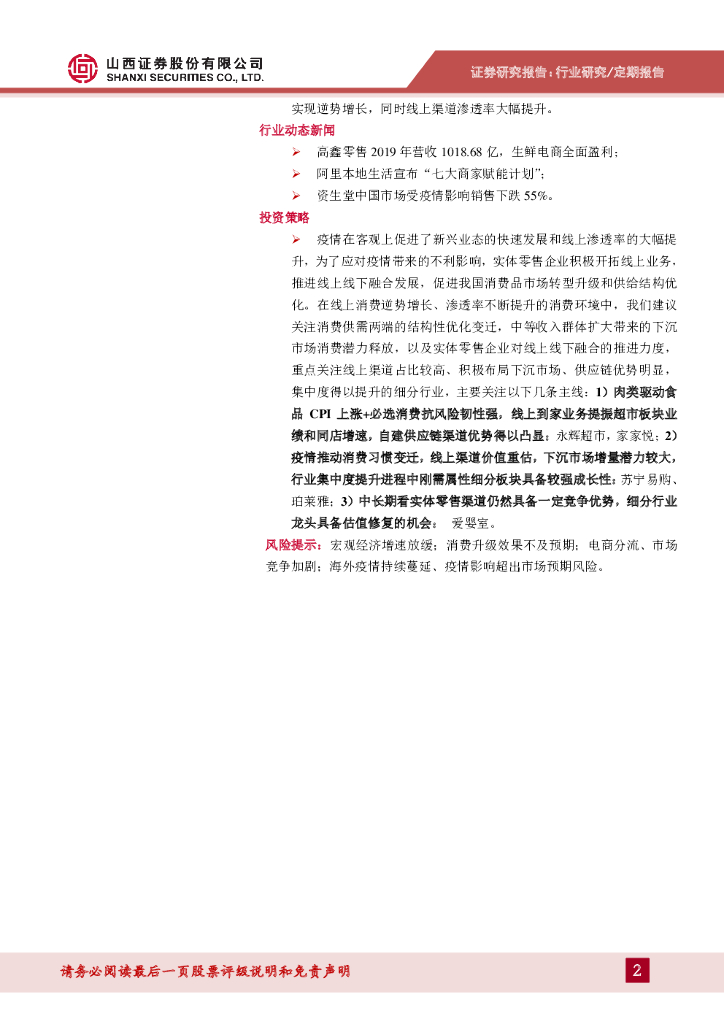 山西证券:商贸零售行业月度投资策略:必选消费抗风险韧性强,疫情推动消费习惯变迁.pdf