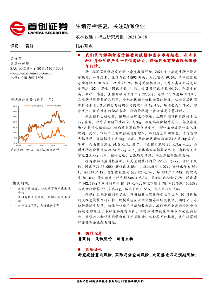 首创证券:农林牧渔行业研究周报:生猪存栏恢复,关注动保企业.pdf