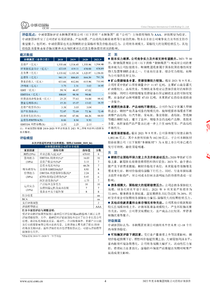中诚信:2022年度本钢集团有限公司信用评级报告.pdf