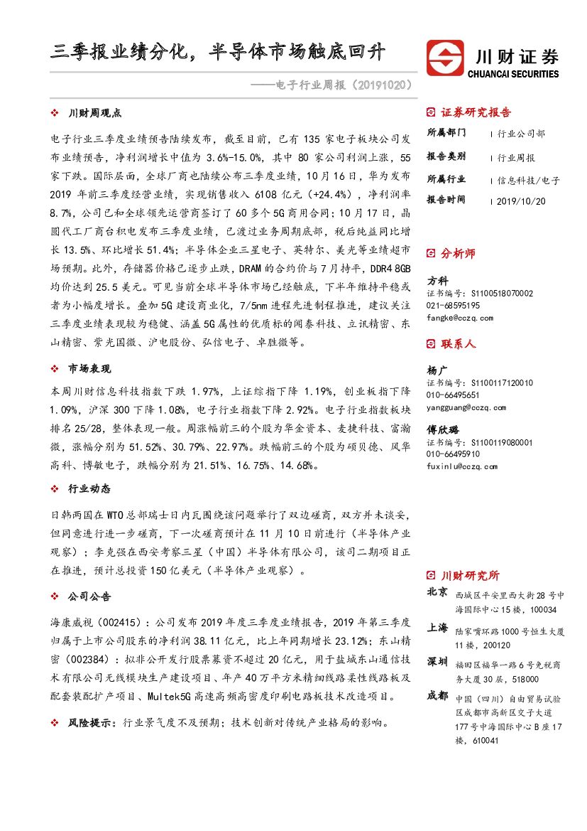 川财证券:电子行业周报:三季报业绩分化,半导体市场触底回升.pdf