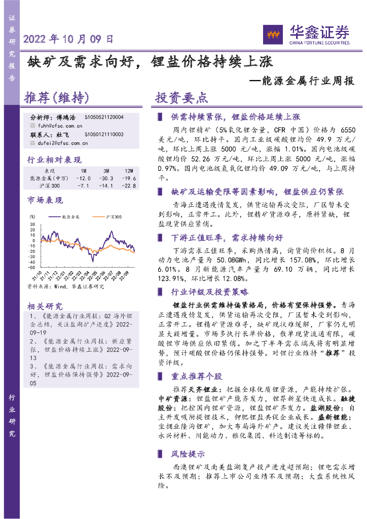 华鑫证券:能源金属行业周报:缺矿及需求向好,锂盐价格持续上涨.pdf