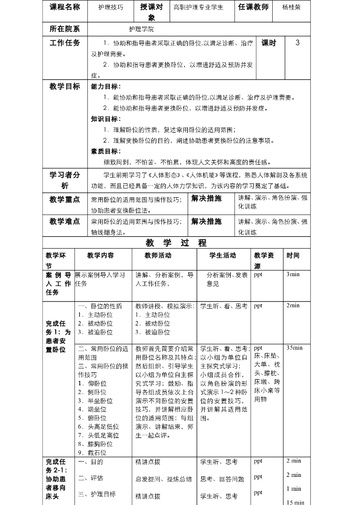 《护理技巧》电子教案-任务三 患者卧位安置与更换.pdf