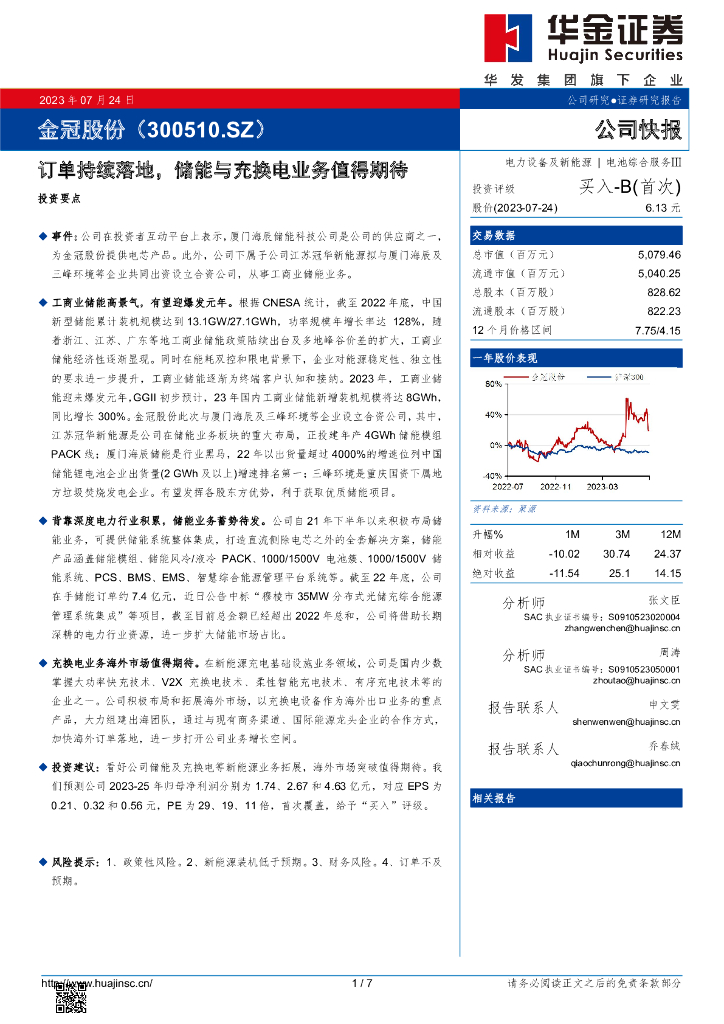 华金证券:金冠股份(300510)-订单持续落地,储能与充换电业务值得期待.pdf