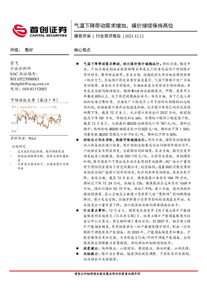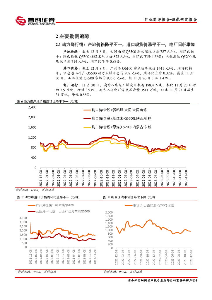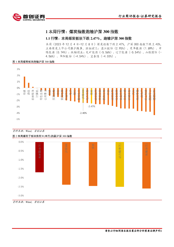 首创证券:煤炭开采行业简评报告:气温下降带动需求增加,煤价继续保持高位.pdf