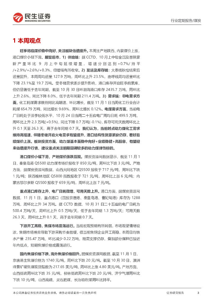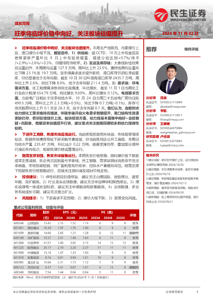 民生证券:煤炭周报:旺季将临煤价稳中向好,关注板块估值提升.pdf
