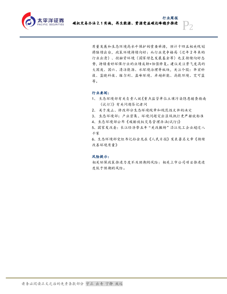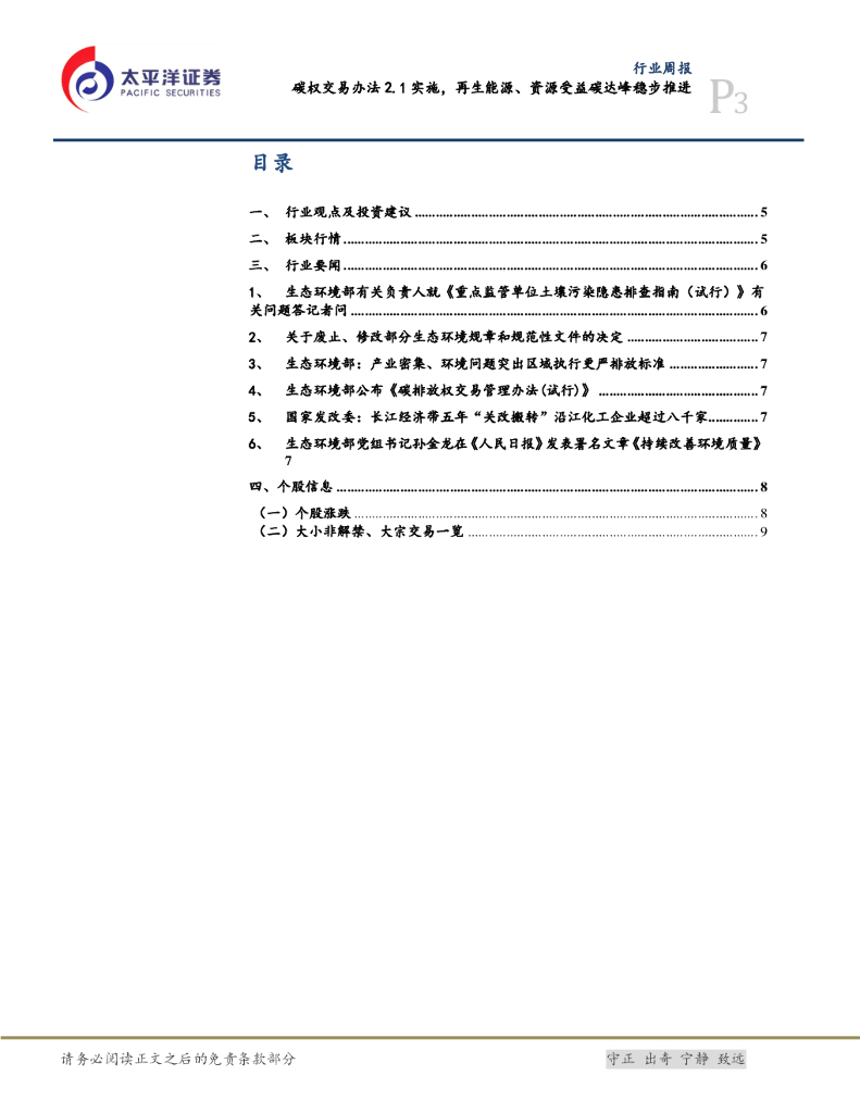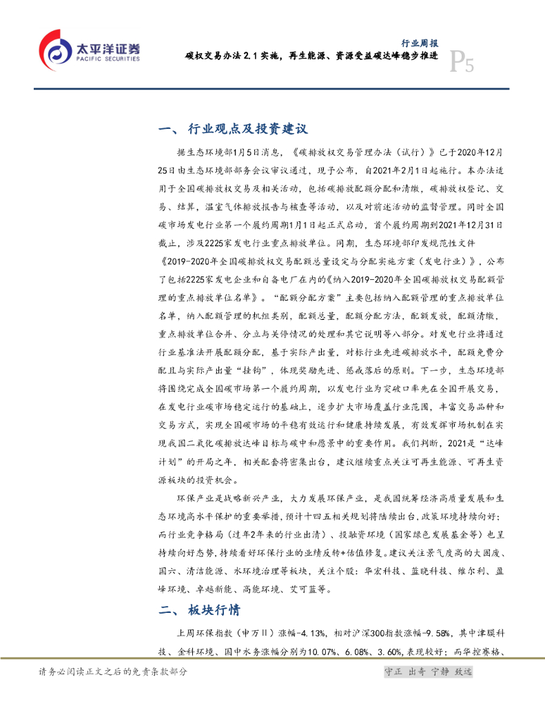 太平洋证券:公用事业行业周报:碳权交易办法2.1实施,再生能源、资源受益碳达峰稳步推进.pdf