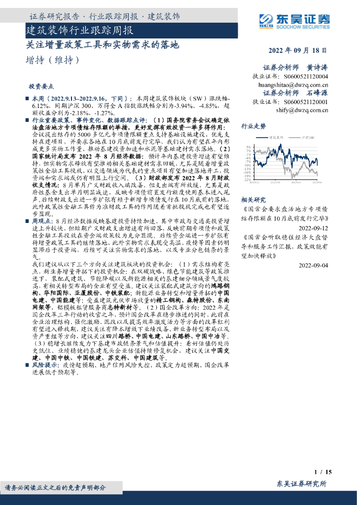 东吴证券:建筑装饰行业跟踪周报:关注增量政策工具和实物需求的落地.pdf
