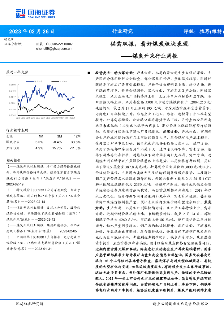 国海证券:煤炭开采行业周报:供需双振,看好煤炭板块表现.pdf