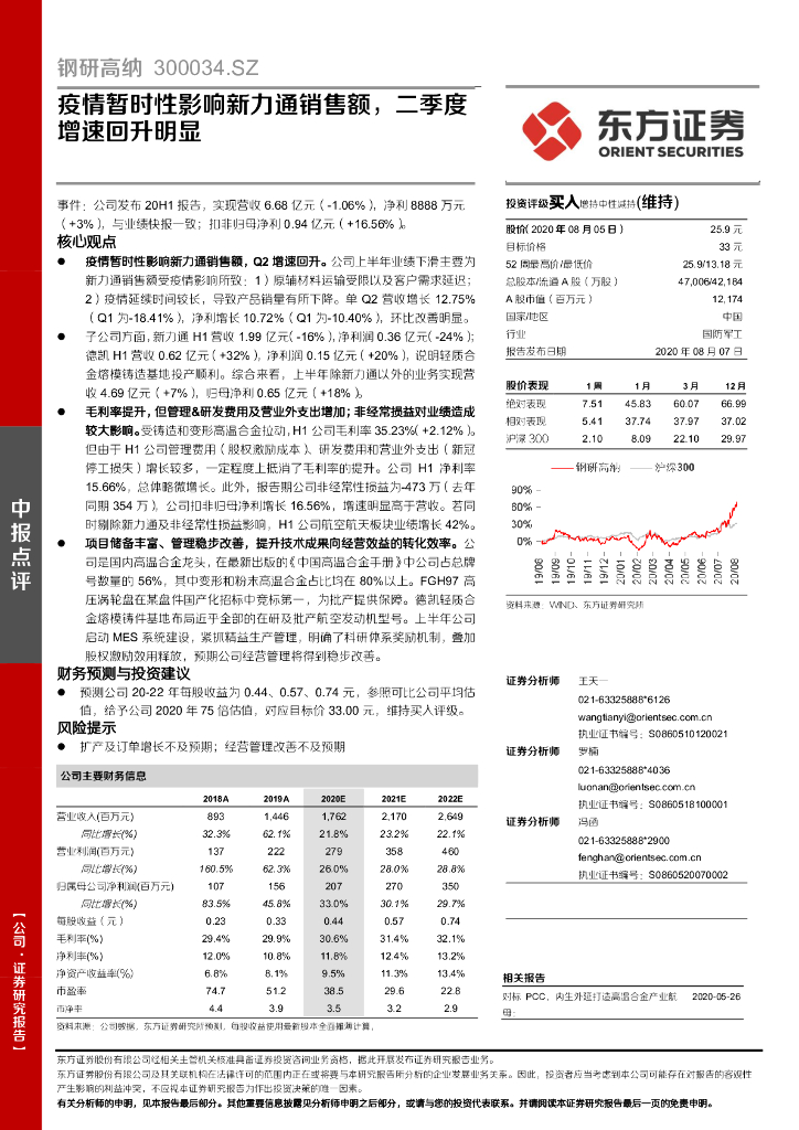 东方证券:钢研高纳(300034)-疫情暂时性影响新力通销售额,二季度增速回升明显.pdf