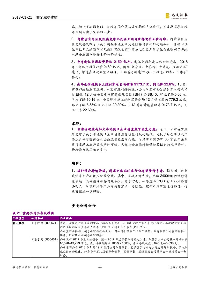 光大证券:非金属类建材行业动态:南部多省出台水泥错峰计划,玻璃、玻纤价格继续上涨.pdf