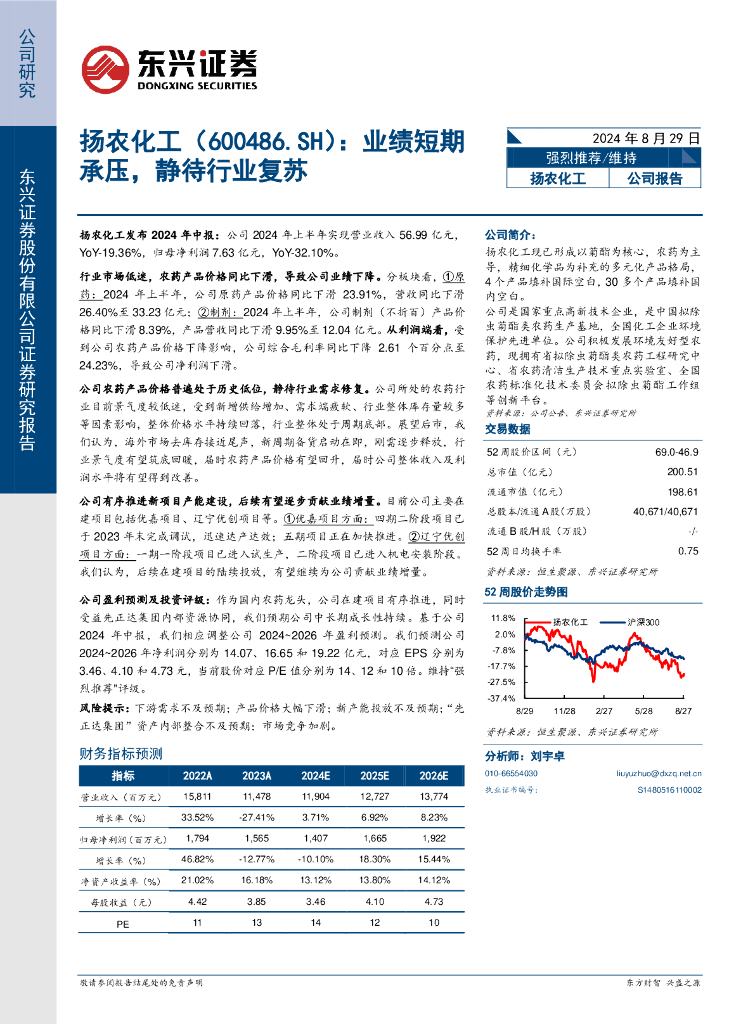 东兴证券:扬农化工(600486)-业绩短期承压,静待行业复苏.pdf