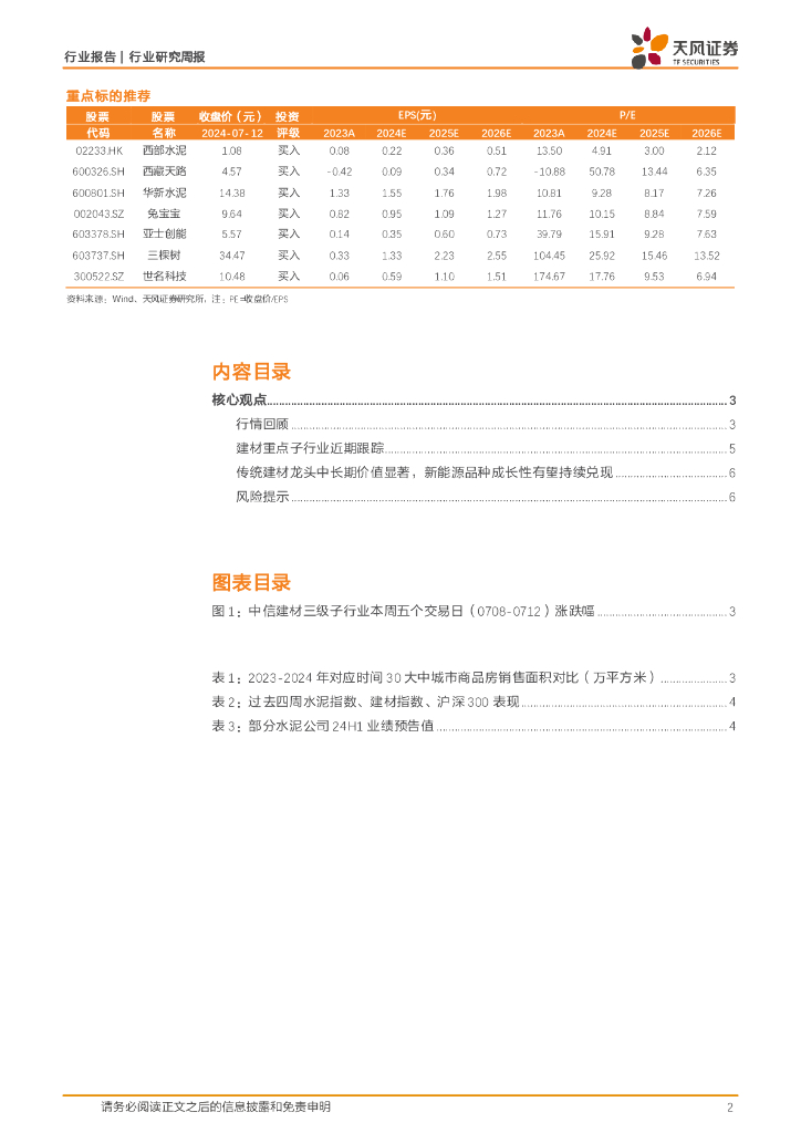 天风证券:建筑材料行业周报:华东水泥价格同比转正,水泥行业下半年业绩改善空间较大.pdf