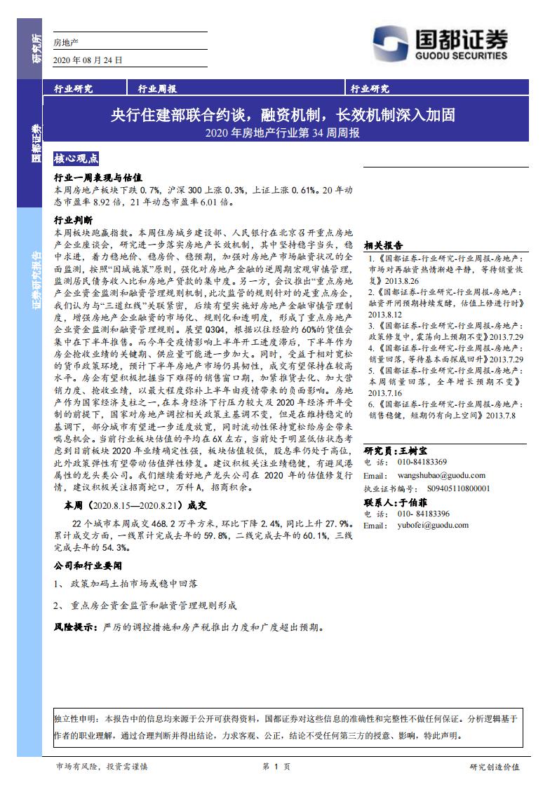 国都证券:2020年房地产行业第34周周报:央行住建部联合约谈,融资机制,长效机制深入加固.pdf