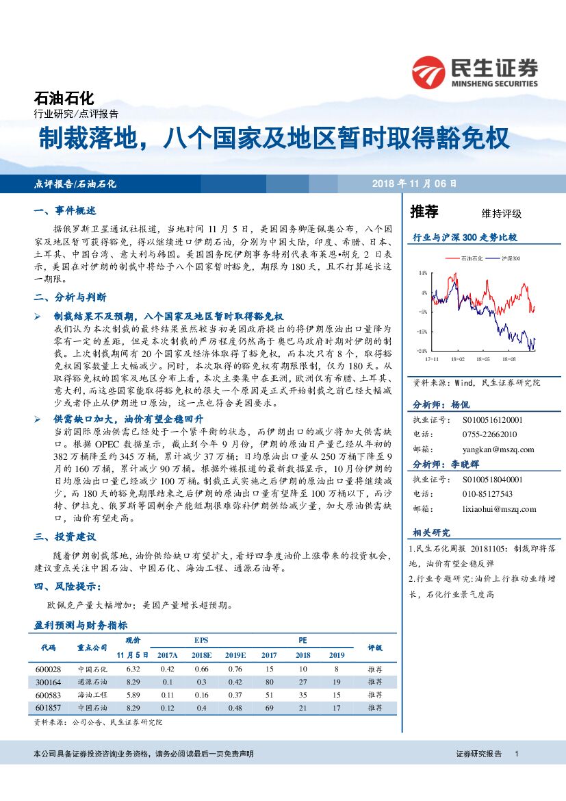 民生证券:石油石化:制裁落地,八个国家及地区暂时取得豁免权.pdf