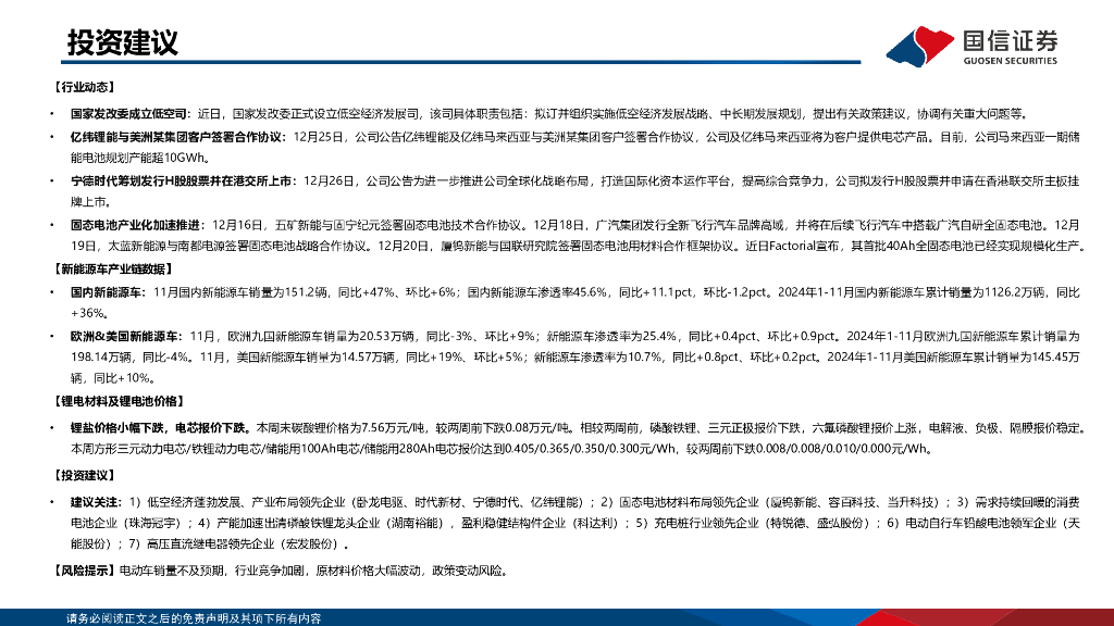 国信证券:锂电产业链双周评(12月第2期):发改委正式设立低空经济发展司,宁德时代筹划在港交所发行上市.pdf